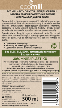ECO MILL – LIQUID FOR WASHING AND CARING FOR FURNITURE AND OTHER SMOOTH SURFACES MADE OF LACQUERED WOOD, VENEERS, PANELS