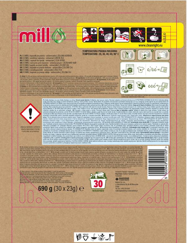 ECOMILL. Universal Laundry Capsules – Green Tea – 30 Capsules