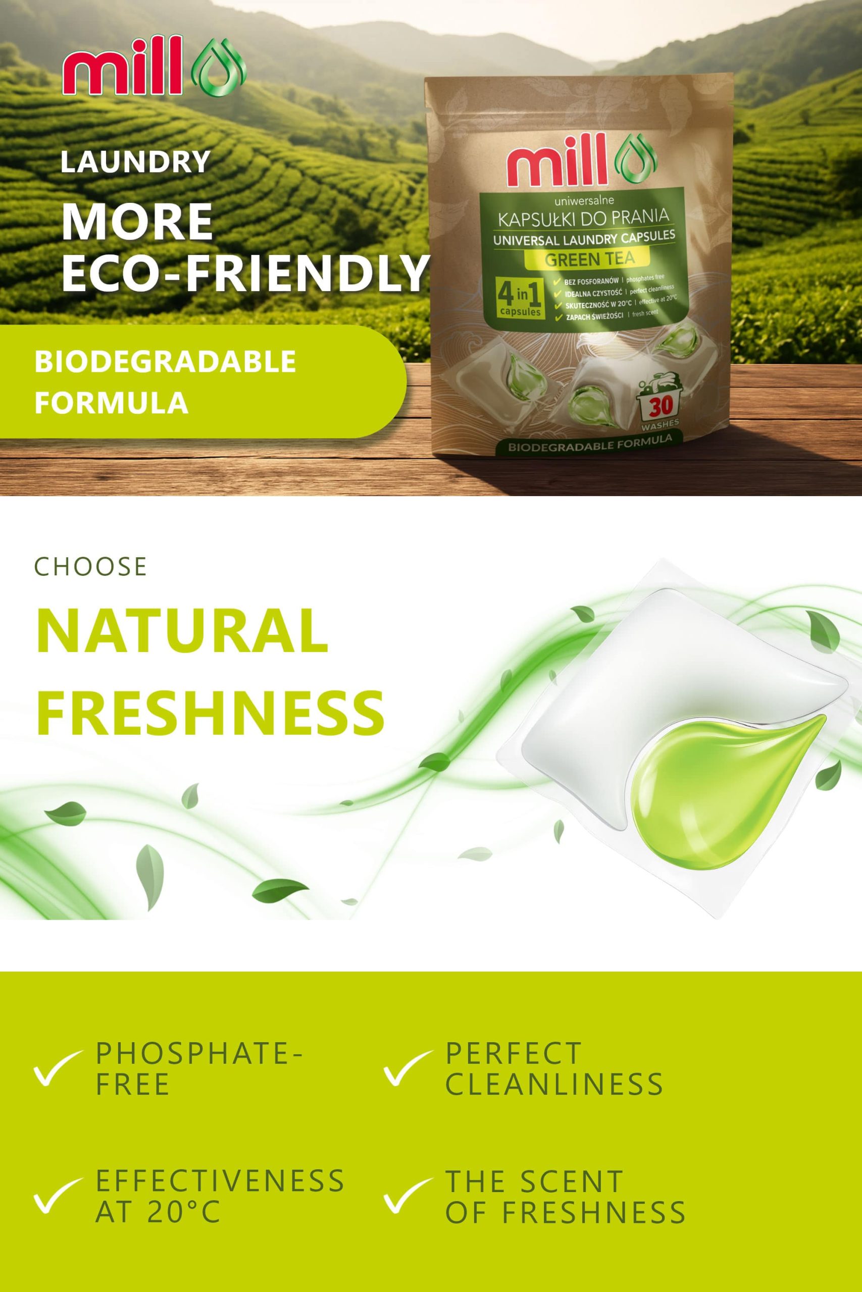 ECOMILL. Universal Laundry Capsules – Green Tea – 30 Capsules