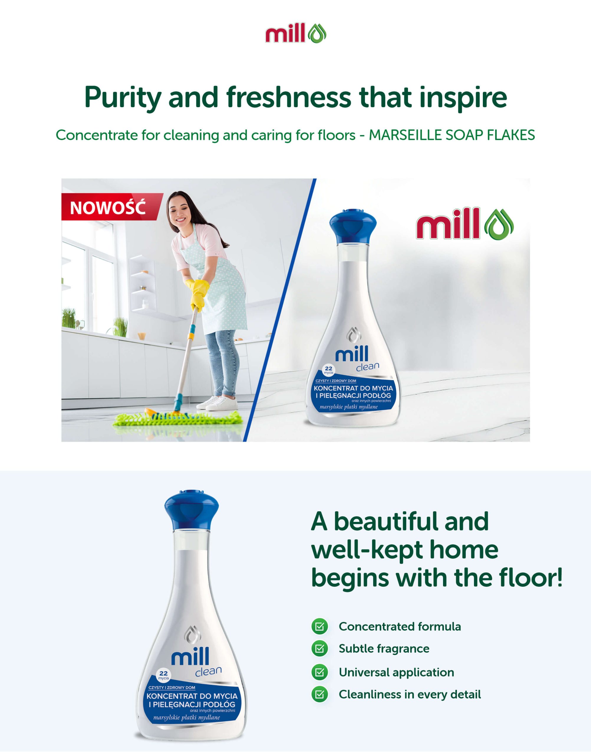 MILL clean – Concentrate for washing and home care – Marseille soap flakes 888 ml