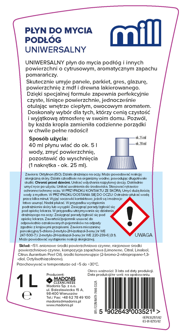 A UNIVERSAL liquid for cleaning floors and other surfaces with a delicate, fruity orange scent.