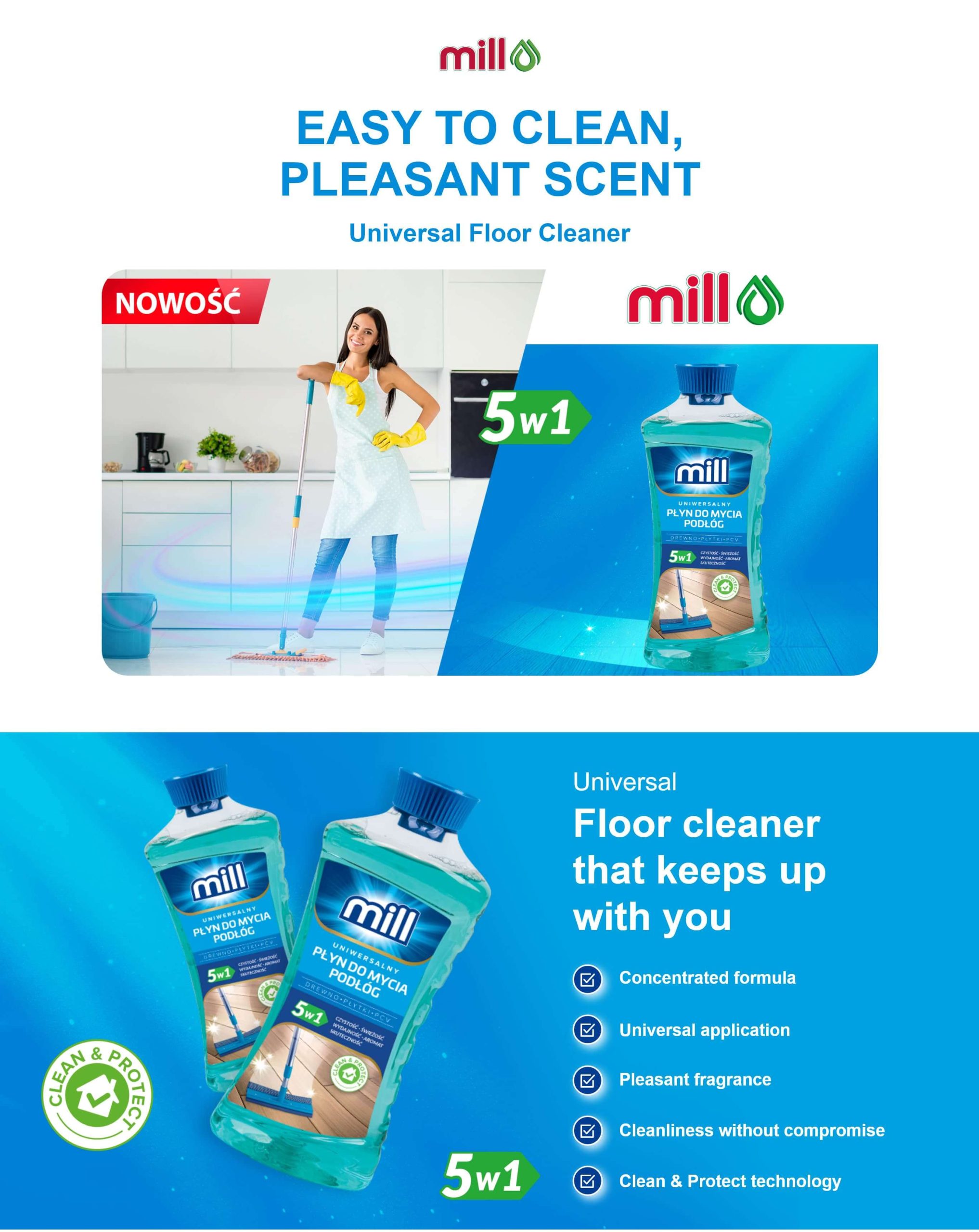 A UNIVERSAL liquid for cleaning floors and other surfaces with a delicate, citrus grapefruit scent.
