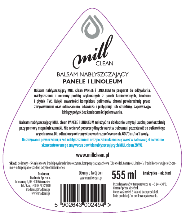 MILL clean – glossy balm PANELS AND LINOLEUM 555 ml