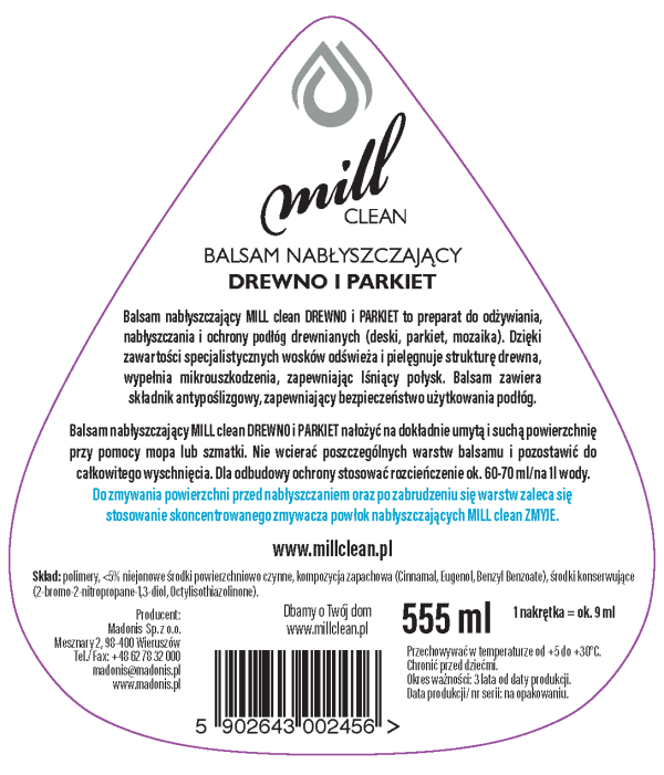 It is a preparation for nourishing, shining and protecting wooden floors (boards, parquet, mosaic). Thanks to the content of specialized waxes, it refreshes and cares for the structure of wood, fills in micro-damage, ensuring a shiny shine. The lotion contains an anti-slip ingredient that ensures the safety of floor use.