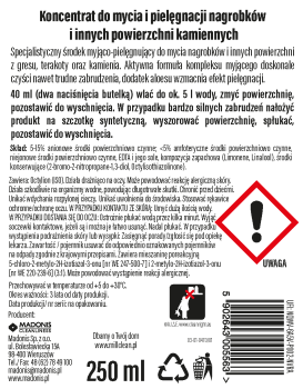 A specialized cleaning and care agent for washing tombstones and other surfaces made of porcelain, terracotta and stone. The active formula of the cleansing complex perfectly cleans even difficult dirt, the addition of aloe vera enhances the care effect.