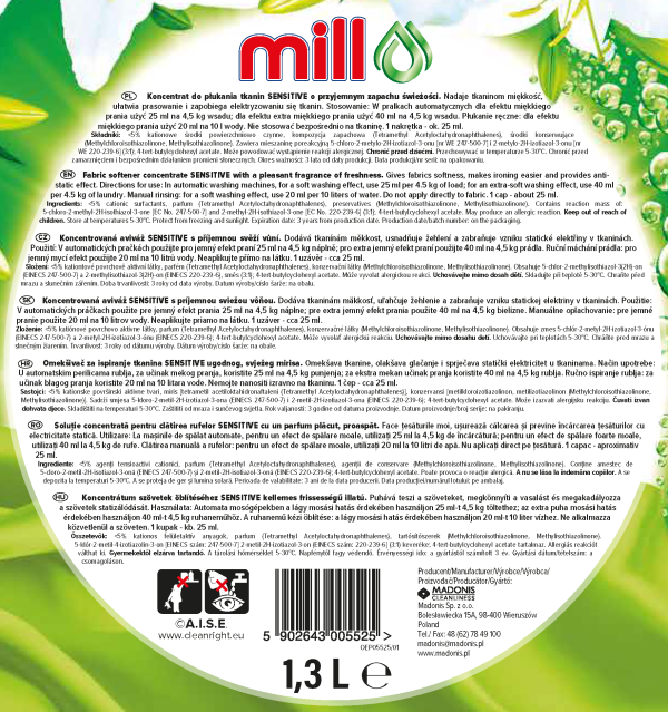 Ingredients: <5% cationic surfactants, fragrance composition, preservatives (Methylchloroisothiazolinone, Methylisothiazolinone).
