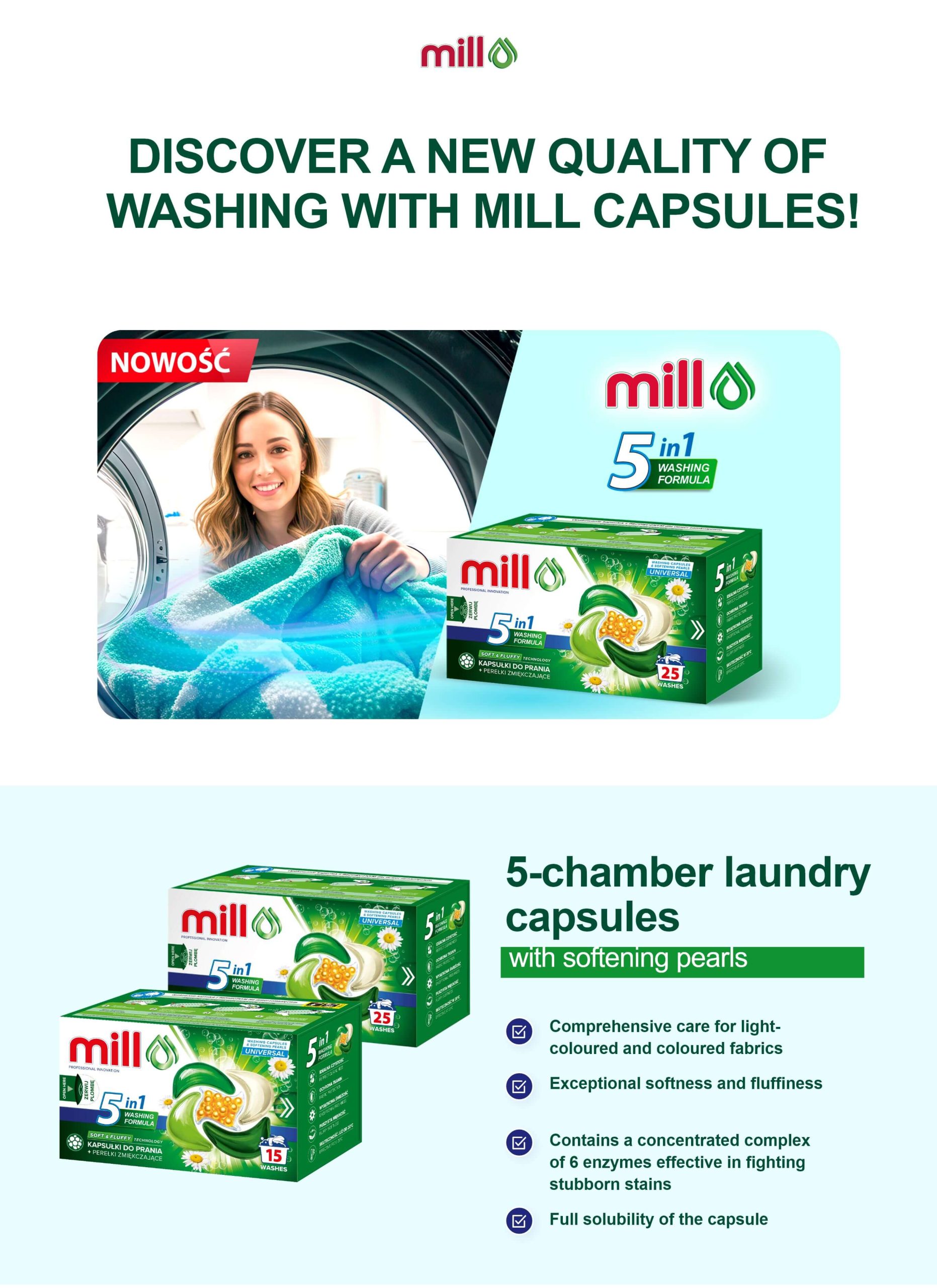 MILL Laundry Capsules + Softening Pearls UNIVERSAL 25 pcs. 5KWB. K