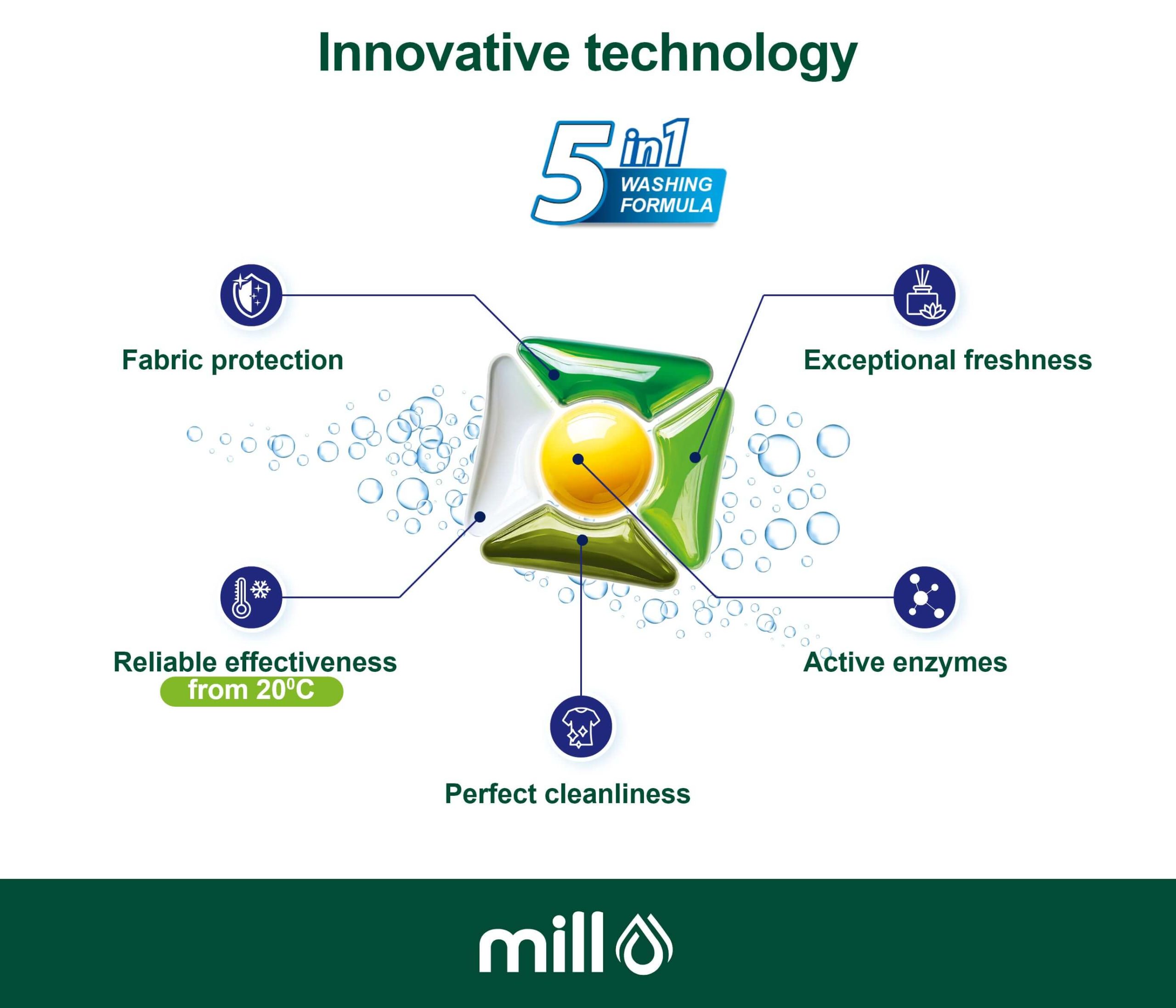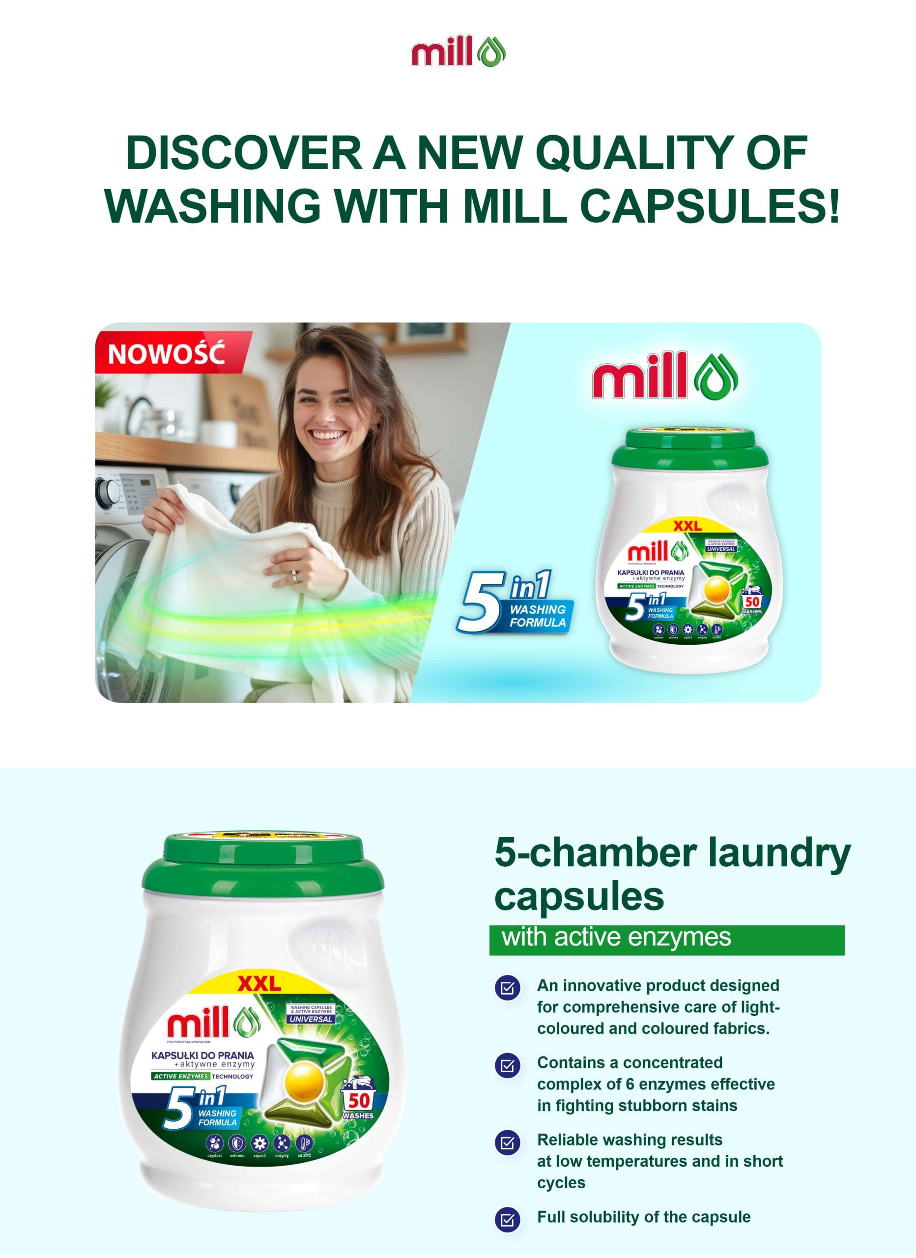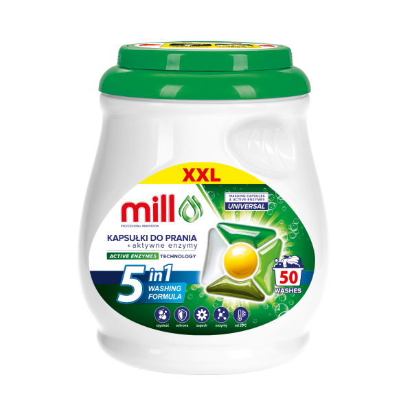 Mill Products LAUNDRY LAUNDRY CAPSULES MILL Laundry Capsules UNIVERSAL + Active Enzymes 50 pcs. 5KKP. S