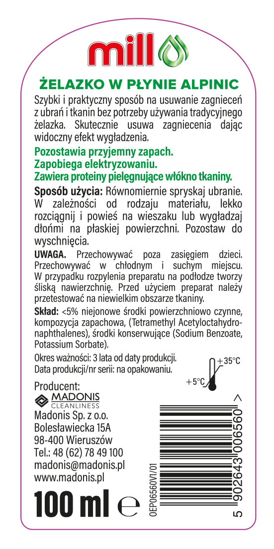 WARNINGSREMARK. Keep out of reach of children. Store in a cool, dry place. If the preparation is sprayed on the floor, it creates a slippery surface. Before use, the preparation should be tested on a small area of fabric.