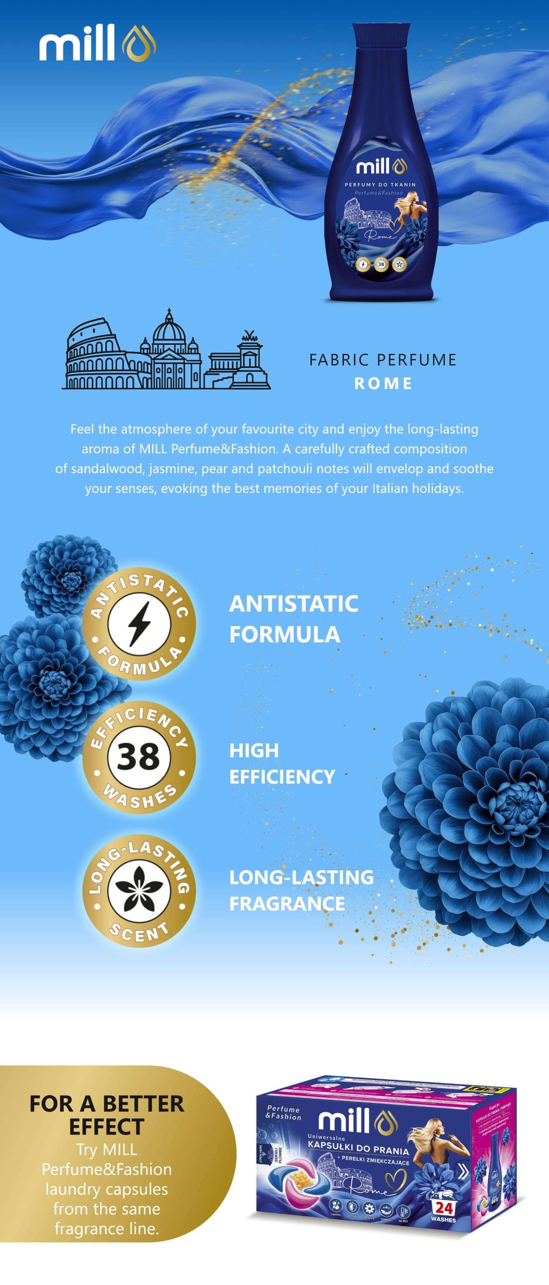 Perfumes for fabrics from the MILL Perfume & Fashion series will give your laundry long-lasting freshness, softness and smoothness, while preventing static on the fabrics. A