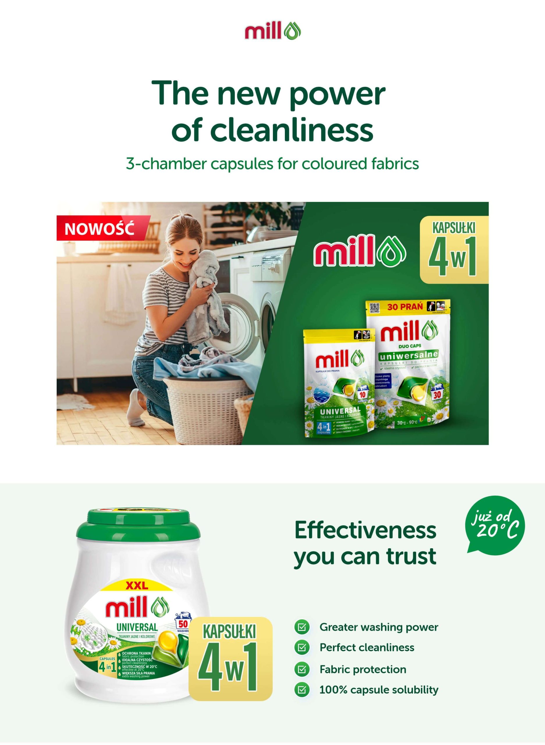 Mill professional capsules will ensure perfect cleanliness and fragrant freshness for your laundry.