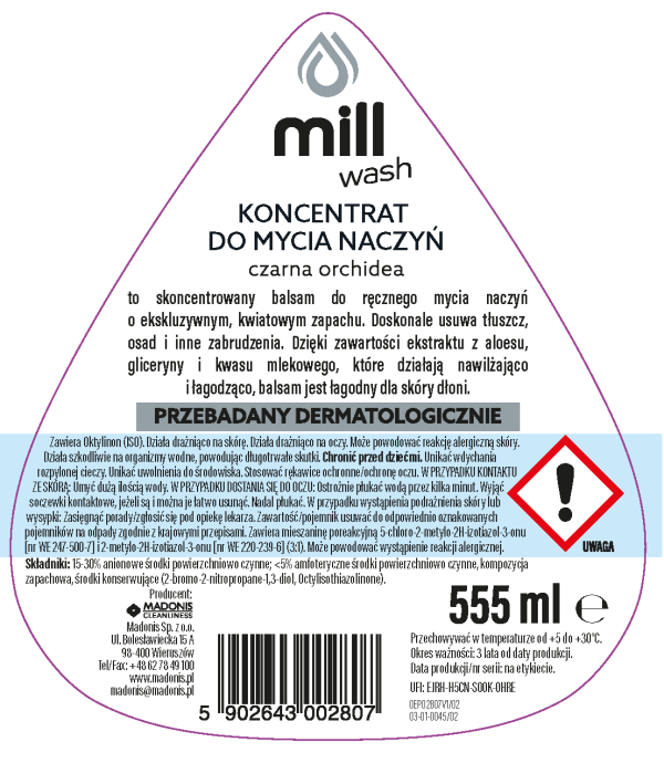 MILL wash – washing concentrate DISHES black orchid 555 ml