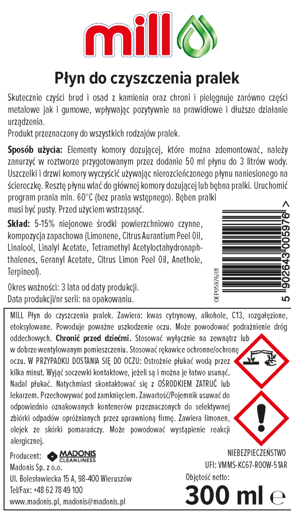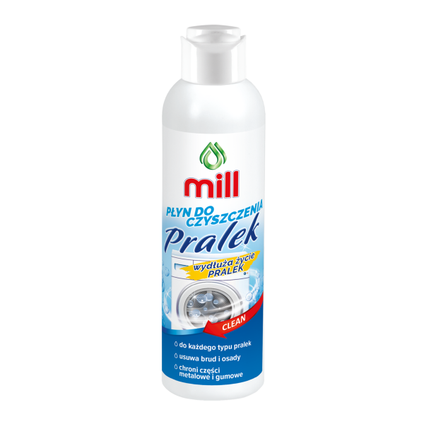 MILL washing machine cleaner – effectively cleans dirt and limescale deposits, protects and cares for both metal and rubber parts, positively affecting the proper and longer operation of the device. The product is designed for all types of washing machines.