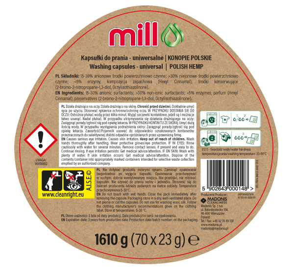 ECOMILL. kapsułki do prania uniwersalne – konopie polskie 70 kapsuł