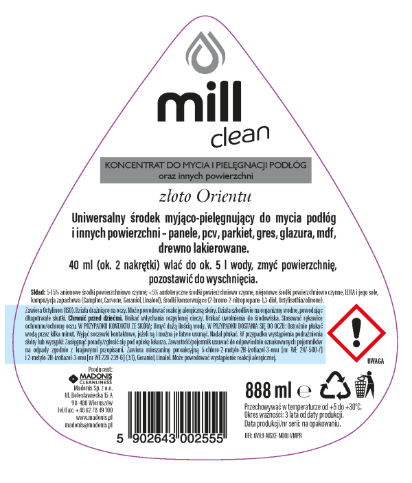 MILL clean – koncentrat do mycia i pielęgnacji domu – złoto Orientu 888 ml