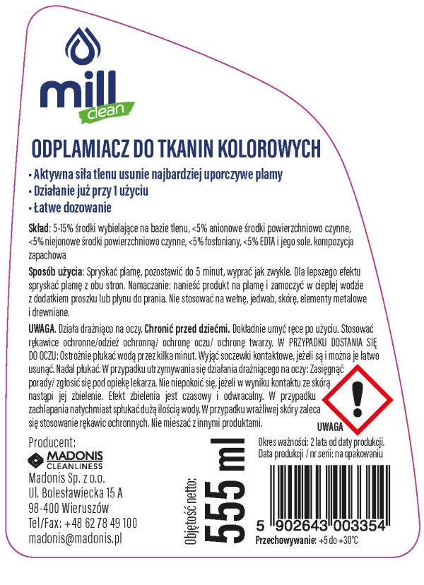 MILL clean – odplamiacz do tkanin kolorowych 555 ml