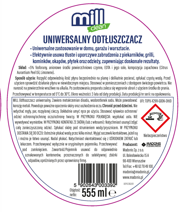 MILL clean – odtłuszczacz – tłuste plamy 555 ml