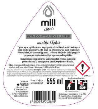 Płyn do mycia szyb i luster oraz innych powierzchni szklanych skutecznie i szybko czyści gładkie powierzchnie. Mill clean nie tylko przywraca blask czyszczonym powierzchniom, nie pozostawiając smug i zacieków, ale również umila sprzątanie przyjemnym, świeżym i niezwykłym zapachem wielkiego błękitu.