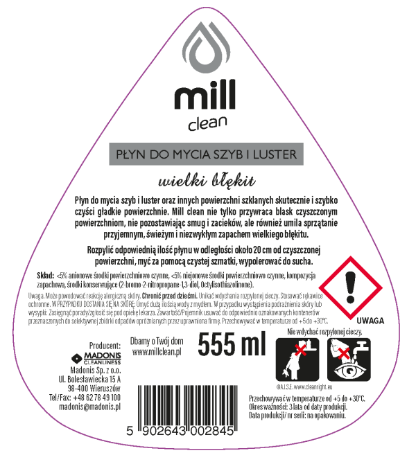 MILL clean – płyn do mycia szyb i luster – wielki błękit 555 ml