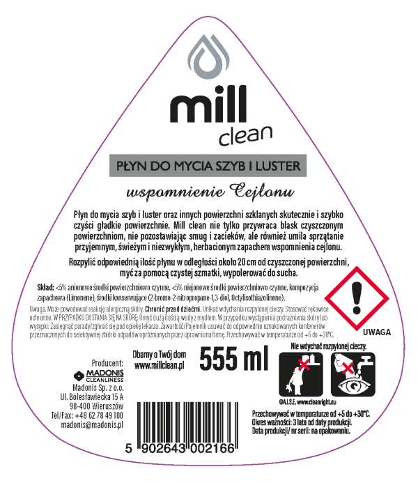 MILL clean – płyn do mycia szyb i luster – wspomnienie cejlonu 555 ml