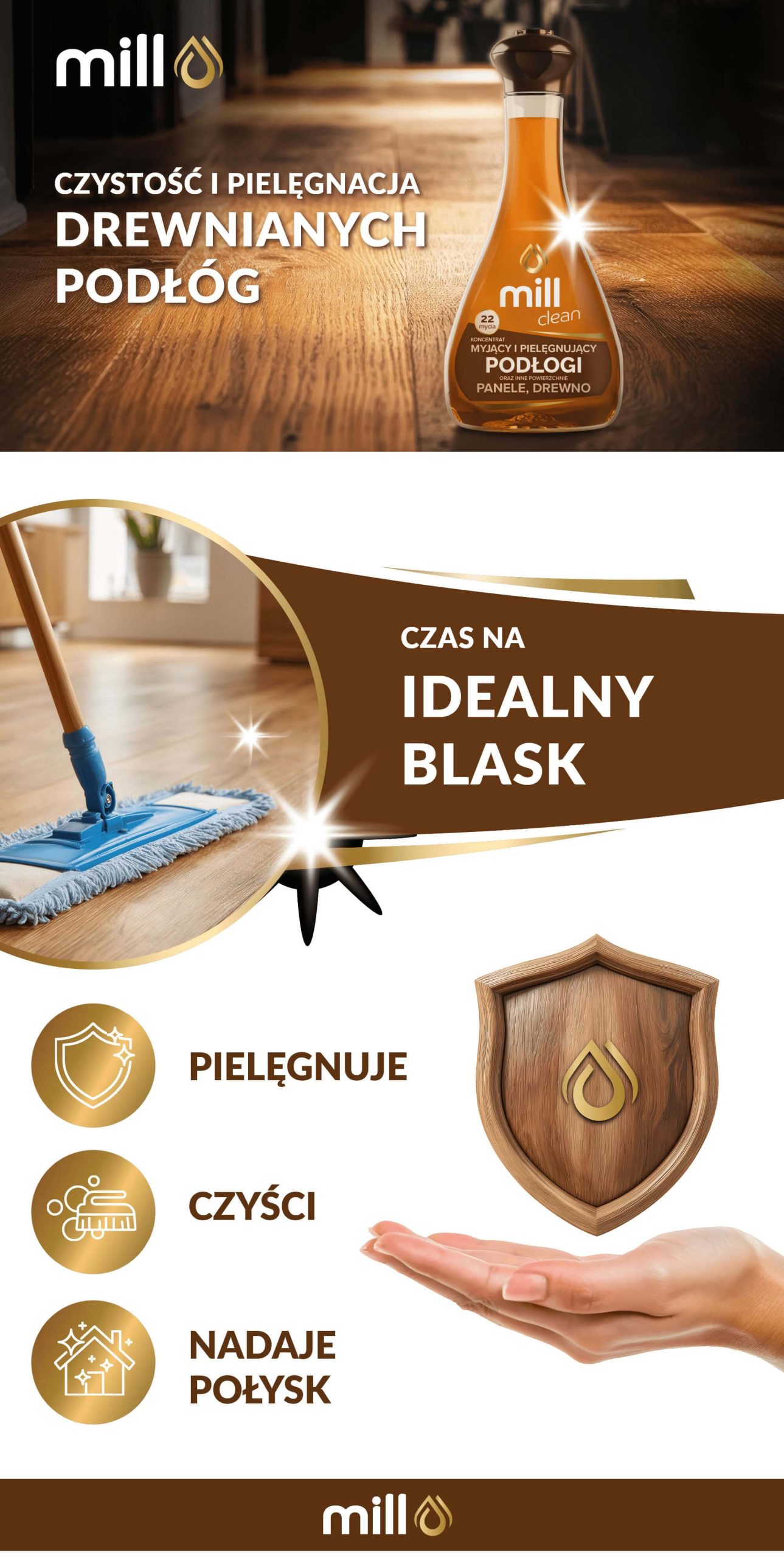 MILL clean – specjalistyczny koncentrat do mycia paneli i drewna lakierowanego 888 ml