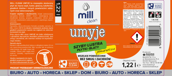 MILL CLEAN UMYJE – PŁYN DO MYCIA SZYB, LUSTER, GLAZURY