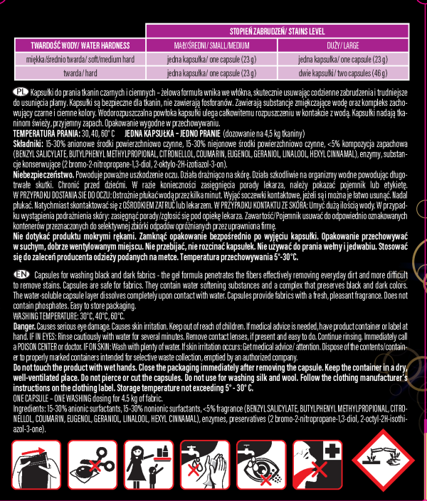 KAPSUŁKI BLACK & DARK DO PRANIA TKANIN CZARNYCH I CIEMNYCH