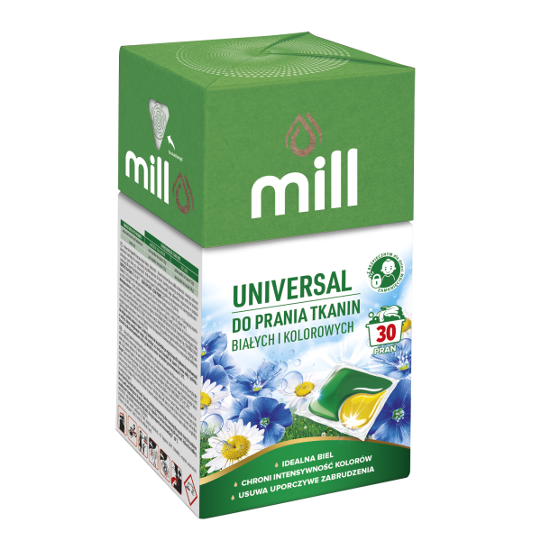 KAPSUŁKI UNIWERSALNE DO PRANIA TKANIN BIAŁYCH I KOLOROWYCH MILL