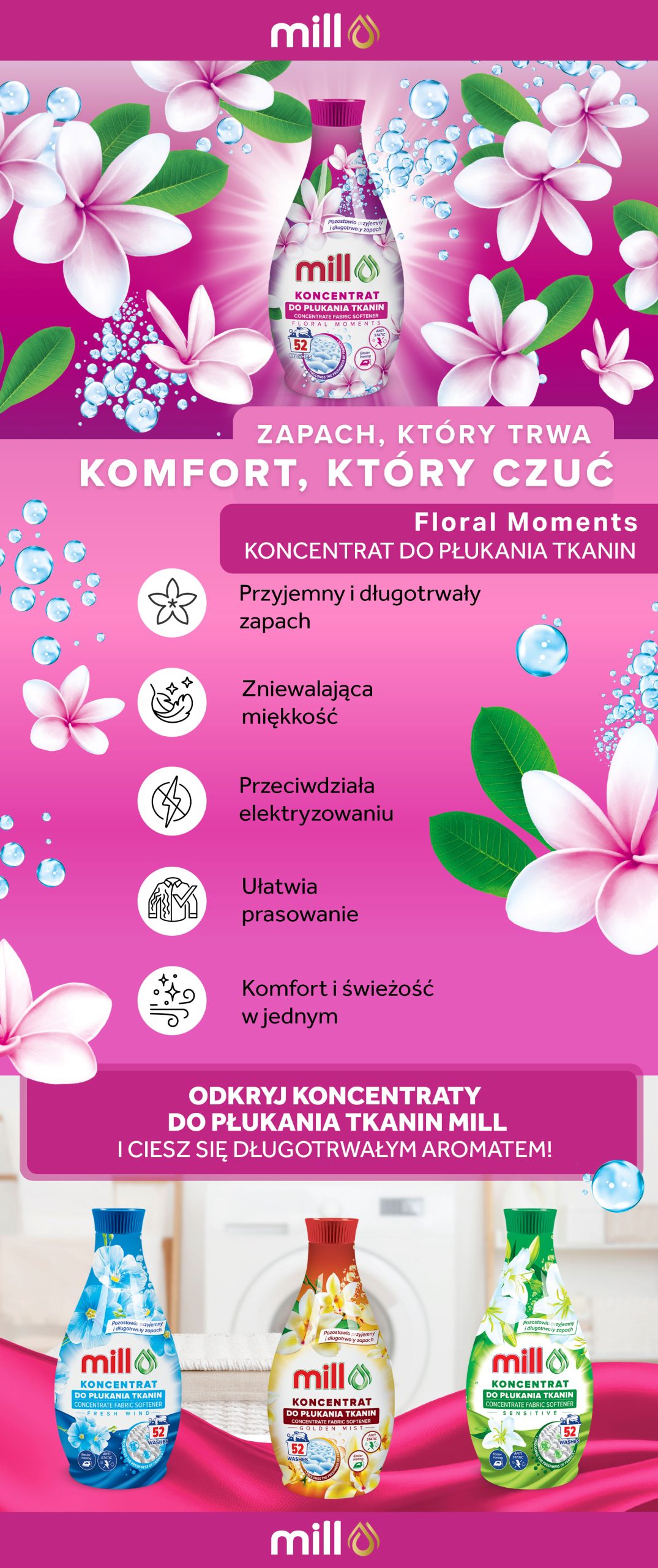 MILL koncentrat do płukania tkanin FLORAL MOMENTS 1,3l