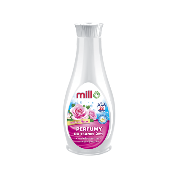 Perfumy do tkanin marki MILL sprawiają, że pranie pozostaje świeże i pachnące na długo. Składniki w nich zawarte zapobiegają elektryzowaniu się materiałów oraz nadają im przyjemną w dotyku miękkość. Wariant MILL DELICATE FLOWER to wyjątkowa kompozycja zapachowa z wyraźną nutą słodko-kwiatową.