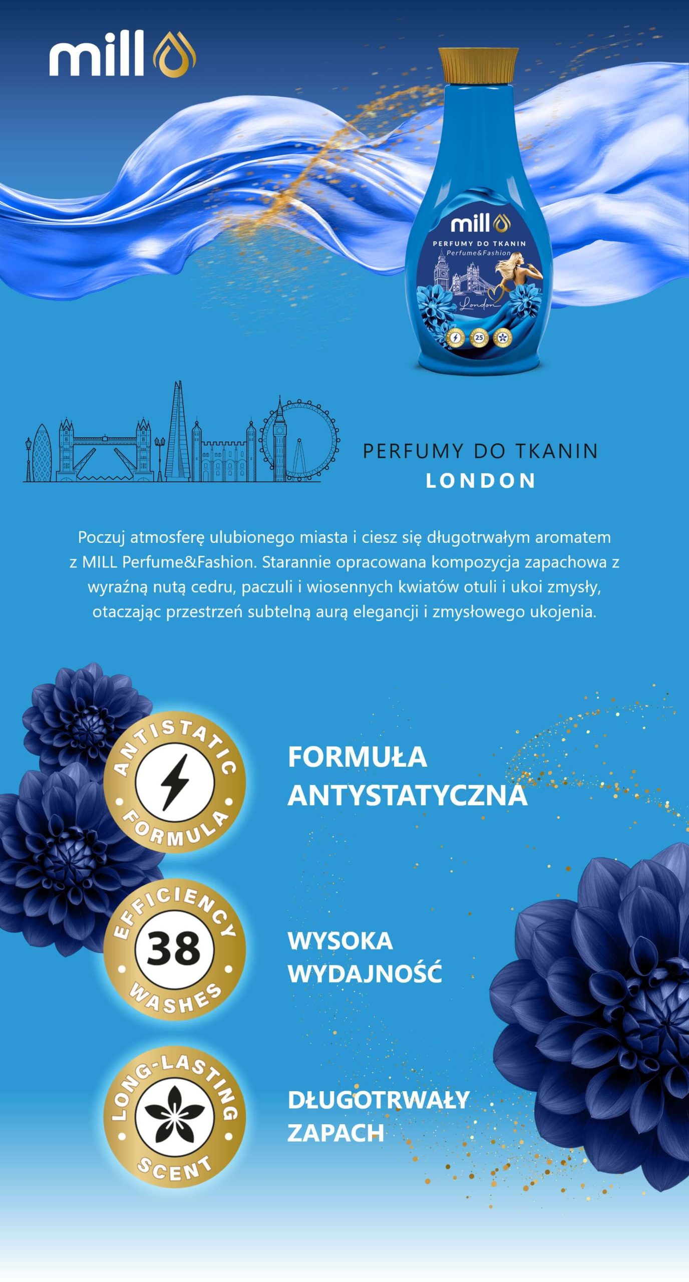 Mill Produkty PRANIE PŁYNY DO PŁUKANIA MILL Perfumy do tkanin Perfume&Fashion London 480 ml