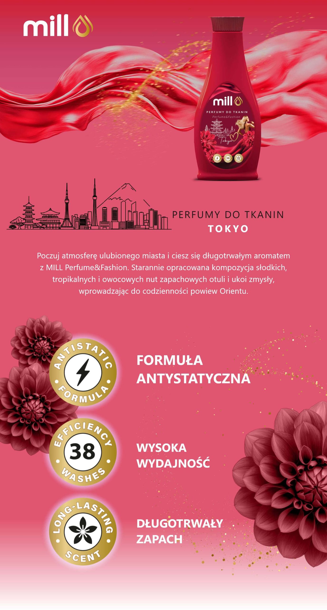 Mill Produkty PRANIE PŁYNY DO PŁUKANIA MILL Perfumy do tkanin Perfume&Fashion Tokyo 750 ml