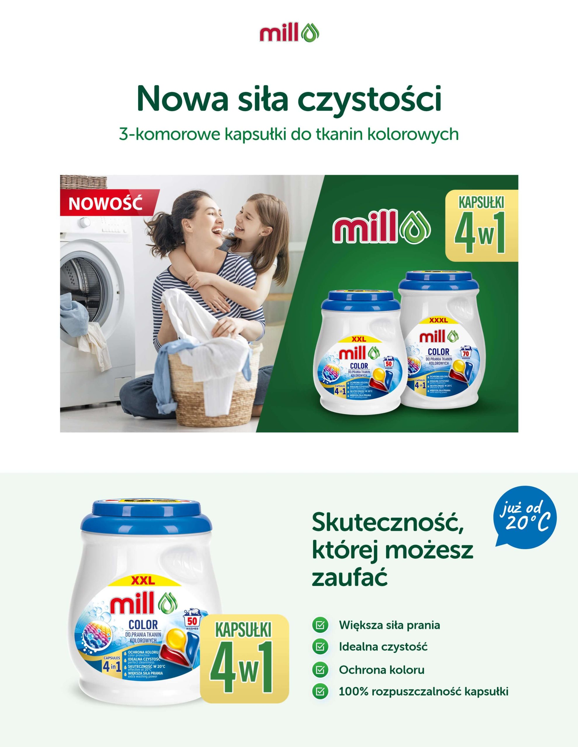 Kapsułki Mill professional zapewnią twoim praniom idealną czystość i pachnącą świeżość, jak również ochronią kolor twoich tkanin.